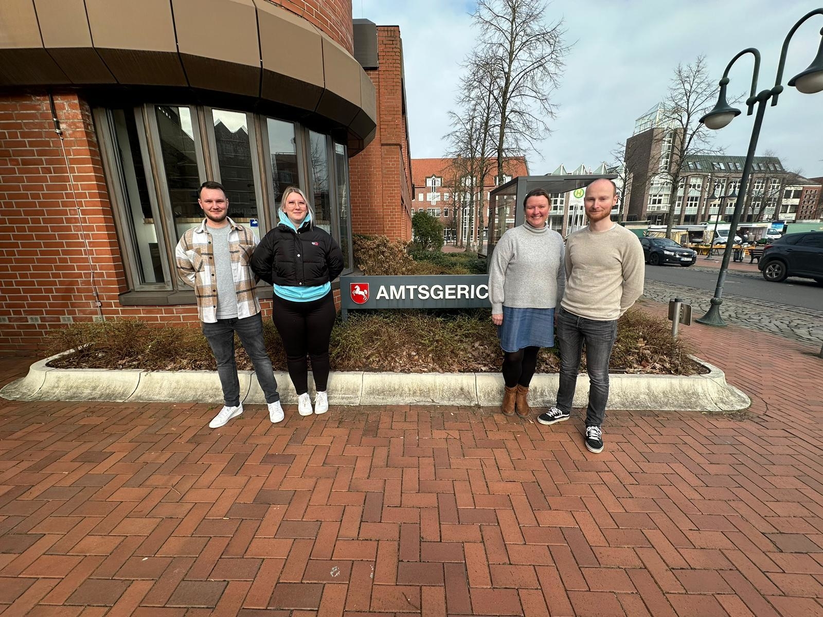 Am 28.02.2024 verabschiedeten die Ausbildungsleiter des Amtsgerichts Rotenburg (Wümme), Jana Dahm und Roland Klein, die Justizsekretäranwärter Annalena Schwarck und Marvin Kutz. Nach erfolgreichem Abschluss ihrer 2,5jährigen Ausbildung in sämtlichen Bereichen des Amts- und Landgerichts sowie der Staatsanwaltschaft treten die jungen Kollegen ab dem 01.03.2024 ihre neuen Stellen am Amtsgericht Hannover an.